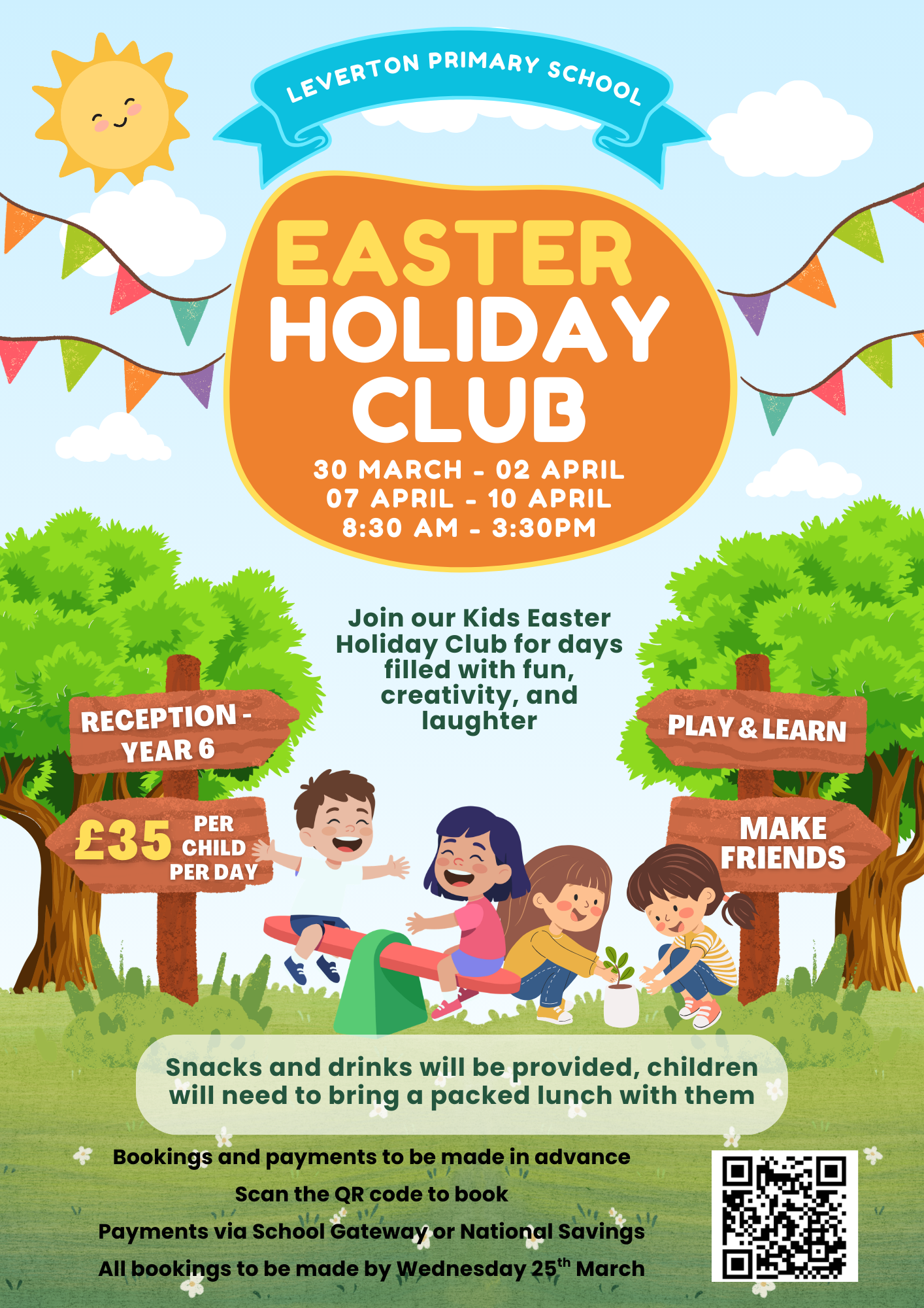 Easter Holiday Club at Leverton: Bookings now open via the Google form link below. Payments via Schoolgateway. ...